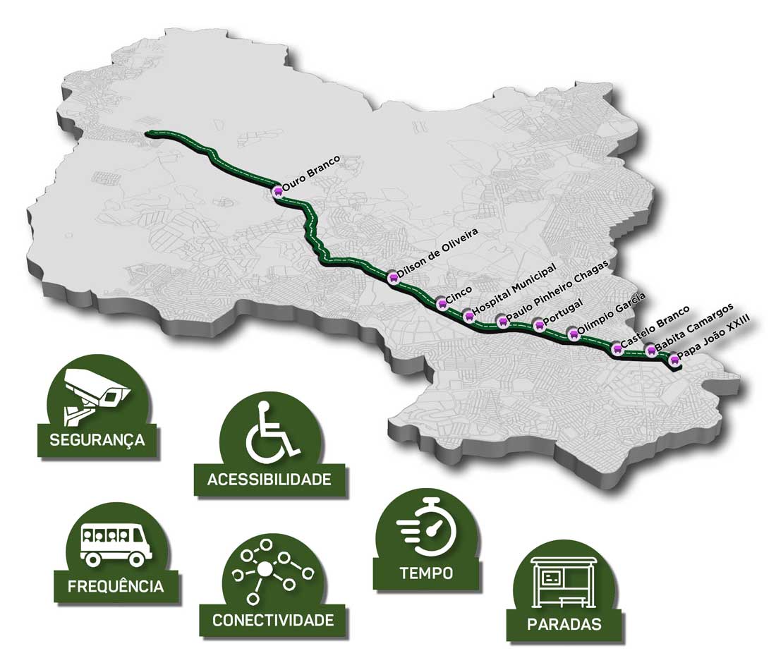 Estações de Transferência são locais que permitem a integração física para troca de ônibus, sem pagar nova tarifa. As estruturas estarão localizadas ao longo do corredor Norte Sul e são caracterizadas por oferecerem conforto e segurança aos usuários. Foram dimensionadas de modo a atender a demanda de passageiros de acordo com a região de instalação e as características das viagens. O projeto das estações visa uma execução industrializada e que se adere às características do município de Contagem.